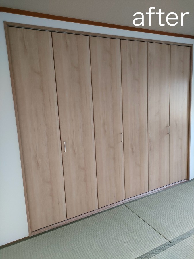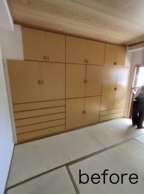 備え付け収納家具を撤去して、収納用建具を取り付けるリフォーム工事です。